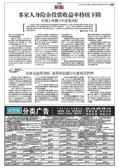 新快报记者发现,在多数险企投资收益率上升的同时,还有部分险企收益率不仅没有涨,甚至出现同比连续下降,如工银安盛人寿、恒安标准人寿、汇丰人寿、爱心人寿、中美联泰大都会人寿、农银人寿等。