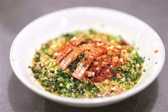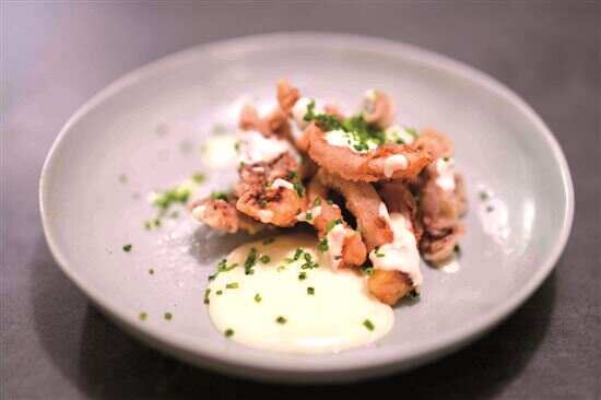 那份看起来不太起眼的白酱酥鱿鱼须,泡椒打成的泡沫是绝对的点睛之笔,没吃时面无表情,吃下去后“七情上面”,顿时理解了陈生口中的“意想不到”和“不确定性”所带给人的欣喜愉悦。与此相若的还有红油滑蛋,原材料采用无菌蛋,取六成熟的状态,追求“像刀一样瞬间戳中你的滑嫩力量”……