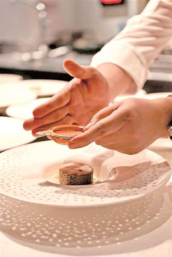开局一道帝皇鲑塔塔以“鲜”字诀登场,它的鲜来自帝皇鲑本身以及汁酱当中的鲣鱼,更有面上那一层薄薄的鱼子酱,各种不同的鲜聚合在一起,组成腾挪起伏的层次,在口腔中次第“爆”开。