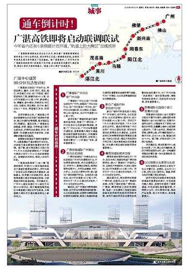 广湛高铁联调联试启动会近日召开,标志着广湛高铁联调联试前的准备工作已全部完成,项目即将正式进入联调联试阶段,为项目年底具备通车条件奠定了坚实基础。除广湛高铁外,广东今年还有广清城际南延段等6条铁路计划开通,这些线路将加密中心城区线网,推动大湾区交通深度融合,“轨道上的大湾区”加速成形。