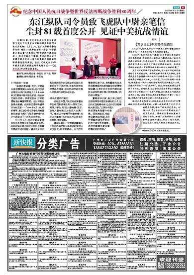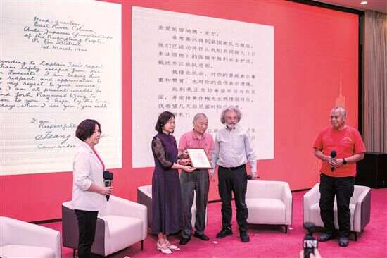 时隔81载,东江纵队司令员曾生致美国飞虎队飞行员克尔中尉的英文亲笔信首次公开亮相!8月21日,在广州华侨博物馆举行的“穗同心·我和祖国有个约会”侨界故事分享会暨“万里同心”华侨抗战专题展活动上,克尔中尉之子戴维·克尔和曾生之子曾德平联手把这一信件的复制件捐赠给华侨博物馆进行展出。当天,记载克尔1944年被东江纵队营救过程的战地日记——《克尔日记》中文简体版首发。