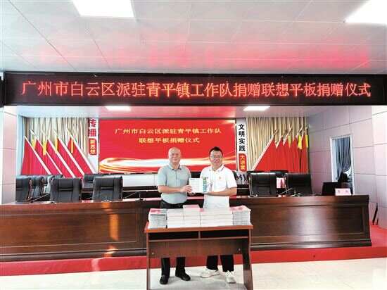 新快报讯 记者朱清海报道 日常会议材料印制、跨部门文件传阅等环节仍高度依赖纸质操作,不仅耗时耗力,且年均耗材成本高……为破解基层办公痛点,8月21日,广州市白云区驻湛江廉江市青平镇帮镇扶村工作队(下称“工作队”)向青平镇政府捐赠18台联想平板电脑,旨在推动基层行政办公数字化转型。