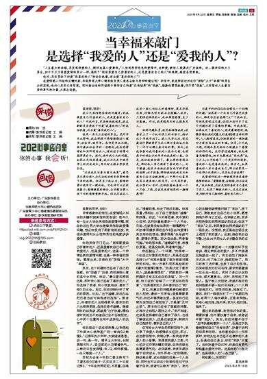 “人生最大的幸福,是发现我爱的人,刚好也真心爱着我。”人世间形形色色的爱情中,这种爱,被世人羡慕并广为流传。这一期来信的大三男生,如千千万万渴望爱情的男女一样,遇到了“到底要爱自己所喜欢的人,还是爱喜欢自己的人”的难题,感觉备受煎熬。