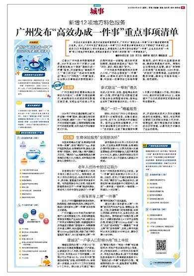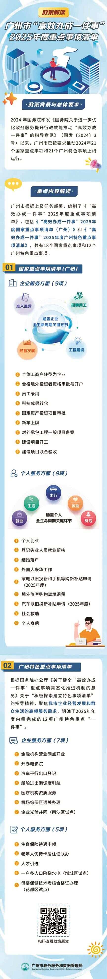 作为优化政务服务、提升行政效能的重要抓手,广州市以“高效办成一件事”小切口撬动营商环境大改革。近日,广州市印发《“高效办成一件事”2025年度重点事项清单》(以下简称《广州清单》),在落实2025年度国家21项任务基础上,新增老年人优待卡居住证联办“一件事”、企业光伏并网“一件事”等12项地方特色服务,实现政务服务从“多部门来回跑”到“一件事高效办”。