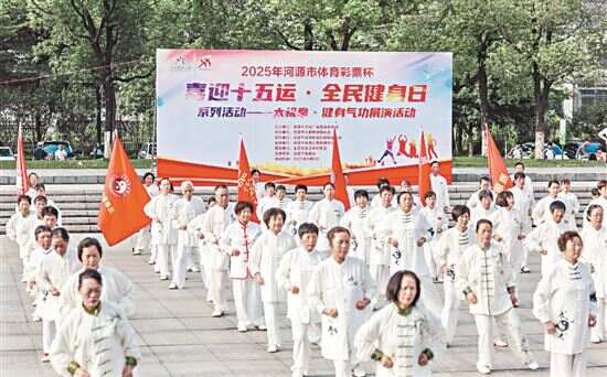 活动当天,“喜迎十五运·全民健身日”太极拳·健身气功展演活动在河源市客家公园西门广场拉开帷幕。240余名太极健身爱好者齐聚一堂,以行云流水般的八段锦、刚柔并济的二十四式简化太极拳等各具特色的套路,展现中华传统武术的独特魅力。