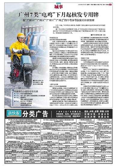 9月1日起,广州市将对从事外卖、快递等7类民生服务行业单位的电动自行车核发专用号牌。