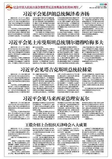 据新华社电 9月2日下午,国家主席习近平在北京人民大会堂会见来华出席2025年上海合作组织峰会和纪念中国人民抗日战争暨世界反法西斯战争胜利80周年活动的伊朗总统佩泽希齐扬。