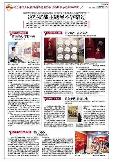 全面展示抗战时期中国共产党领导粤港两地人民同仇敌忾、齐心抗击侵略的历史,通过丰富的历史实物与现代科技再现广州抗战烽火岁月,通过260余张珍贵历史照片及大量实物史料,多维度还原粤港两地人民共御外侮的历史场景……为纪念中国人民抗日战争暨世界反法西斯战争胜利80周年,9月2日,多个主题展在广州各大展馆正式开展。