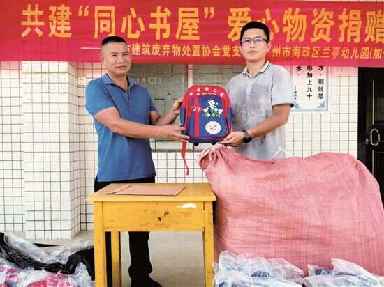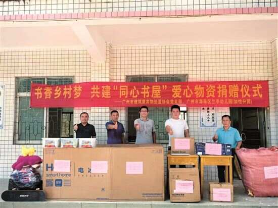广州市建筑废弃物处置协会党支部捐赠了价值3万余元的物资,包括全新笔记本电脑1台、书包70个、精选少儿读物30套和学习笔记本200本。广州市海珠区兰亭幼儿园(加怡分园)根据低龄学生特点,捐赠了32套全新校服、50个全新书包、469本绘本及儿童读物和500余份画纸、油画棒等美术用品,还捐赠了4套科学实验教材,将有效激发学生的科学兴趣。