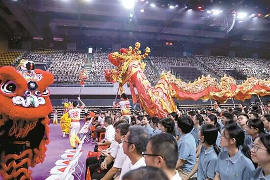 ■9月4日,华南农业大学2025年开学典礼上,龙狮献舞。新快报记者 龚吉林/摄