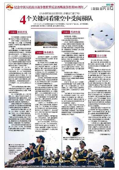 “人民军队空中力量以崭新形象亮相阅兵场,是我军慑阻强敌、制胜空天的强大力量底气,为坚持弘扬正确二战史观、坚决维护战后国际秩序、坚定捍卫国际公平正义提供强大力量支持。”王明志说。