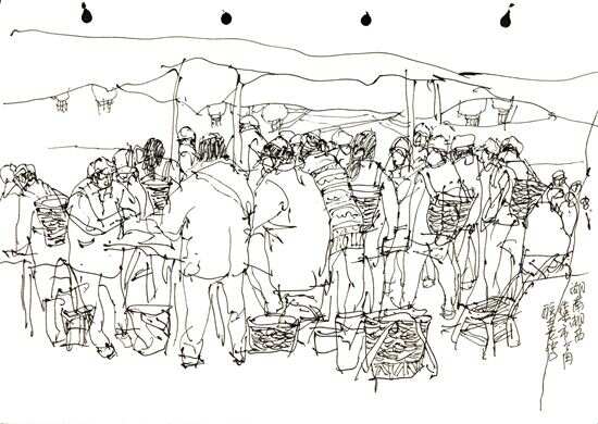 ■陈联喜《湖南湘西市集一角》