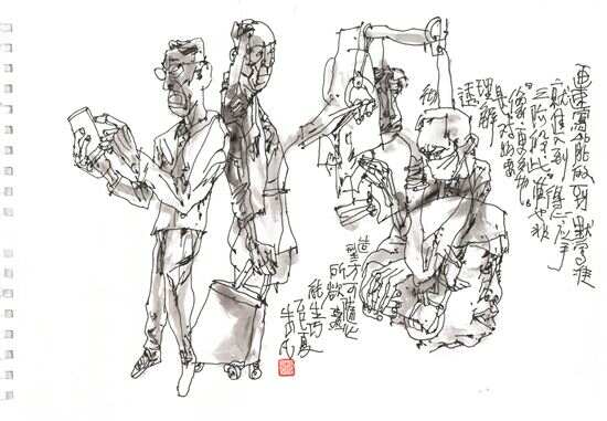 原解放军艺术学院美术系中国画教研室主任、教授任惠中也有同感,“我在生活中去触摸的那一点,拍一万张照片,也没有画一张速写这么感同身受。”谈及为何照片与速写有如此区别时,任惠中认为,“照片很容易混在一起,但是画的时候,笔触能承载当时那种感觉和感触。”