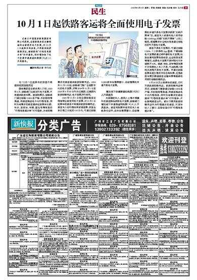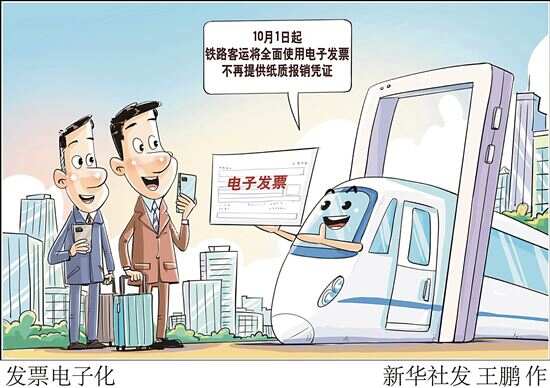 记者从中国国家铁路集团有限公司获悉,全国铁路旅客运输领域将全面使用电子发票,对10月1日起乘车的旅客,不再提供纸质报销凭证,继续提供“行程信息提示单”打印服务,同时增加线下电子发票申请渠道和购票(代办)人开具服务。