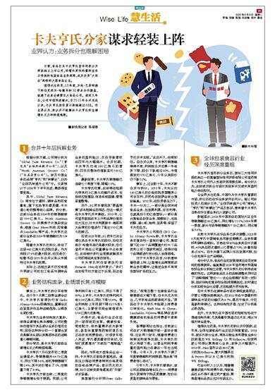 拆分背后,是卡夫亨氏面临业绩增长乏力和转型难题。