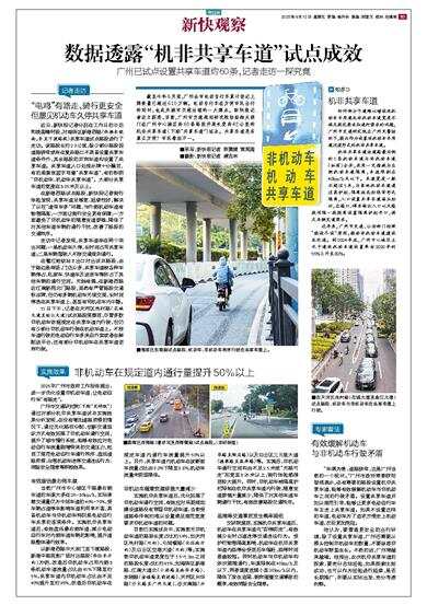 广州市交通研究院(下称“交研院”)通过对部分机非共享车道试点实施效果分析发现,在没有增加道路资源的情况下,通过优化路权分配、创新交通组织方式有效拓展了非机动车通行空间,提升了城市慢行系统,能够有效应对电动自行车流量剧增带来的交通压力,起到了规范电动自行车通行秩序、盘活道路资源、治理机动车违停交通违法行为、消除安全隐患等积极效果。