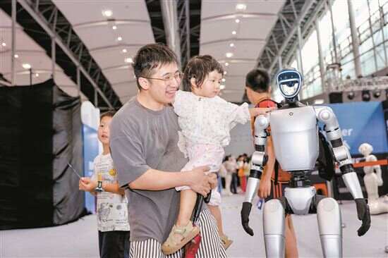 ■8月底举行的广州博览会,聚焦人工智能与机器人等新兴产业领域。图为市民与机器人互动。新快报记者 邓迪/摄