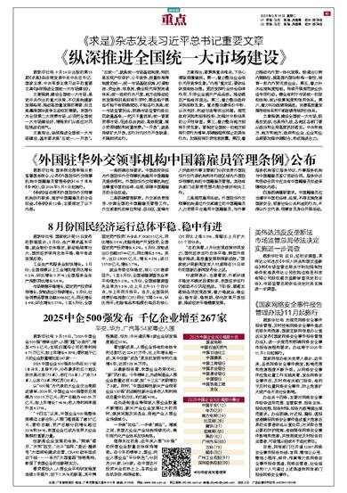 据新华社电 9月16日出版的第18期《求是》杂志将发表中共中央总书记、国家主席、中央军委主席习近平的重要文章《纵深推进全国统一大市场建设》。
