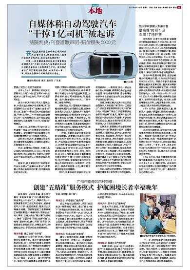 日前,一家自媒体就因为发表文章直指自动驾驶汽车“干掉1亿司机”,结果被汽车公司以侵犯名誉权告上法院索赔5万元。新快报记者从广州互联网法院获悉,本案历经一审、二审,均判决自媒体公司构成侵犯名誉权。