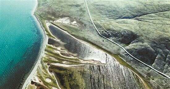 ■7月25日拍摄的“尕日塘秦刻石”所在地青海省果洛藏族自治州玛多县扎陵湖北岸(无人机照片)。新华社发