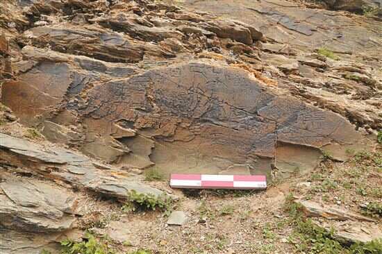 ■文物考古工作者于2023年7月在现场考察时拍摄的刻石遗迹照片。新华社发