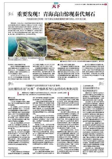 新快报讯 日前,考古人员在青海省玛多县扎陵湖乡卓让村扎陵湖北岸的尕日塘坡地2号陡坎左下方发现一处重要石刻,国家文物局迅速组织石质文物保护、秦汉考古、古文字学和书法篆刻等领域专业人员调查研判。经审慎研究,认定该石刻为秦代石刻,定名为“尕日塘秦刻石”,是我国目前已知唯一存于原址且海拔最高的秦代刻石,矗立河源,补史之缺,意义重大,具有重要的历史、艺术和科学价值。