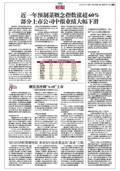 新快报讯 记者涂波报道 罗永浩质疑西贝部分餐品为预制菜事件持续发酵,引发广泛热议。反映在二级市场,A股预制菜概念股也是“蠢蠢欲动”。9月15日,预制菜概念股得利斯、三江购物等涨停,惠发食品、国联水产、天康生物、千味央厨等数十股跟涨。近一年,预制菜概念指数涨超60%。记者注意到,相对二级市场的涨幅,部分预制菜概念股的业绩却并不理想,不少预制菜公司中报下滑。
