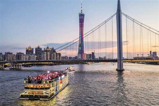 珠江夜游华丽蜕变,两岸灯光全新升级,再现如诗如画、流光溢彩的羊城都市夜景,立体呈现“水岸会客厅”风景线。