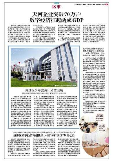 新快报讯 记者陈洁 通讯员天宣报道 9月16日,新快报记者从广州市天河区了解到,1月至8月,天河区新设企业超15.7万户,同比增长125.6%,企业总量历史性突破70万户。截至2025年8月底,天河企业总量已达71.05万户,占全市企业总量的26.5%。这相当于天河区每百人拥有企业数达31户。2025年上半年,天河区实现数字经济核心产业总量773.75亿元,占全区GDP比重22.2%。