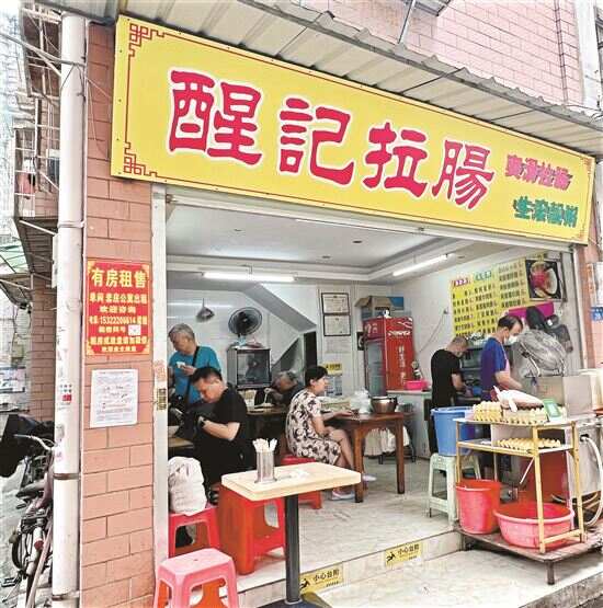 醒记拉肠就在进入巷子不远处,店面非常小,也非常家常,除了肠粉,还有生滚粥——粥粉面饭中的粥与粉,通常都是好搭档。