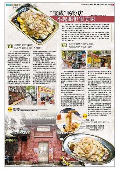 然而,也不知何时起,坊间一些肠粉连锁店为了追求更美观的卖相,开始在纯米浆里加一些澄面粉,虽然成品色泽显得更白、更透亮了,但口感始终没有纯米浆的纯粹。本期,新快报记者就在广州荔湾或海珠等老城区发现了一些卖肠粉的街边小店,水准颇佳,虽然卖相看起来没那么精致,但“天然去雕饰”的质朴总是令人怦然心动。