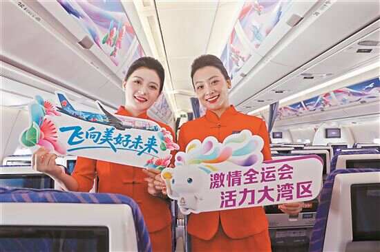 作为第十五届全国运动会和全国第十二届残疾人运动会暨第九届特殊奥林匹克运动会(简称“十五运会”)的官方指定航空服务合作伙伴,南航联合全运会组委会精心打造了“活力湾区号”和“大美湾区号”两架主题彩绘客机,分别为空客A350客机和中国商飞C919客机。