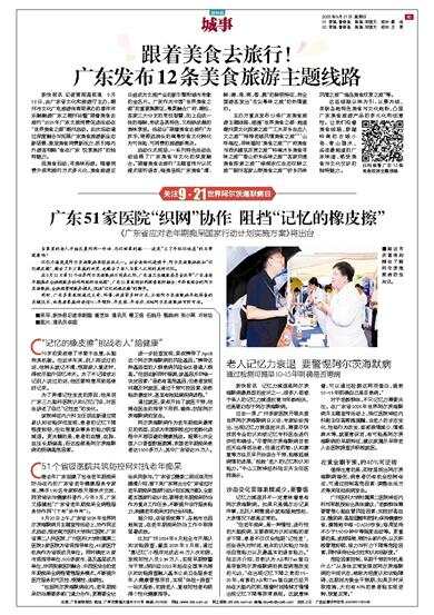 在9月21日第31个世界阿尔茨海默病日到来之际,广东省卫生健康委员会发布“广东省老年期痴呆全病程服务协作网络防治地图”,广东51家医院协同探索医防融合、中西医结合的阿尔茨海默病,全病程管理服务模式,阻挡“记忆的橡皮擦”的脚步。