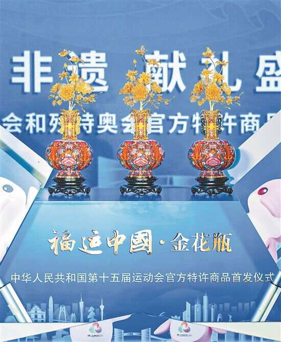 新快报讯 记者高京报道 9月20日,“福运中国·金花瓶”十五运会和残特奥会官方特许商品首发仪式在广州塔举行。新快报记者了解到,“福运中国・金花瓶”产品凝聚多项传统技艺。