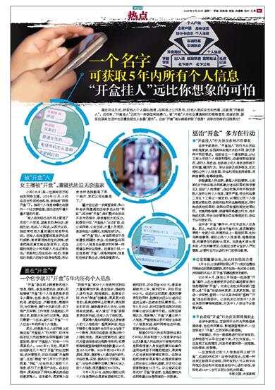 法学专家指出,互联网平台作为网络服务提供者,也应利用算法、数据筛查等技术,一旦发现有人“开盒”,立即采取必要措施。