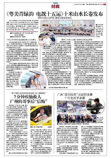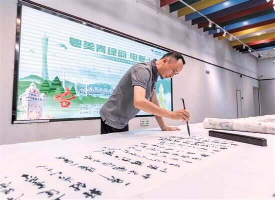 若以丹青描述十五运会保供电的故事,将呈现何种意境?9月20日为十五运会倒计时50天,当天,《粤美青绿韵 电靓十五运》十米山水长卷发布活动在佛山市青少年文化宫举办。墨笔轻皴青山意,一纸绿电入画屏。七位艺术家耗时数月,以十五运会、大湾区、电力科技和绿美广东为元素,精心创作了一幅秀丽的山水长卷。