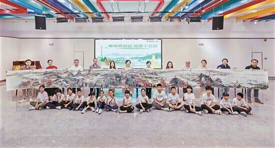 活动现场,艺术家们为画卷完成了最后的点睛之笔,让整幅作品的气韵更显灵动。十五名少年儿童亦受邀到场,将湾区建筑、电力设施、体育运动绘于纸上,以纯真笔触表达对十五运会的美好祝愿。