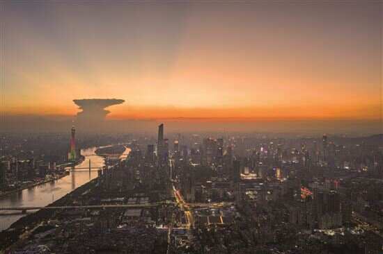 ■9月22日傍晚,广州上空迎来晚霞,整座城市沉浸在台风“桦加沙”来临前的宁静中。 新快报记者 郭思杰/摄
