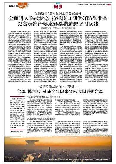超强台风“桦加沙”将于24日以强台风级或超强台风级(15~16级)在广东省中西部沿海地区登陆,23-25日严重影响广东省海面和陆地。9月22日,广东省气象局、省水文局、自然资源部南海分局以及省文化和旅游厅召开防御台风“桦加沙”联合新闻发布会。记者从会上获悉,台风“桦加沙”或成今年以来登陆广东省和中国的最强台风,登陆时强度比台风“山竹”更强。