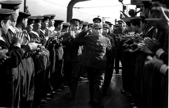 ■1978年,庄田在南海舰队海南榆林海军基地码头的军舰上。