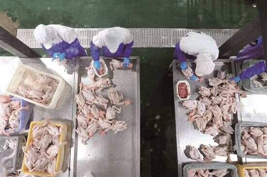 ■工人在车间加工清远鸡。