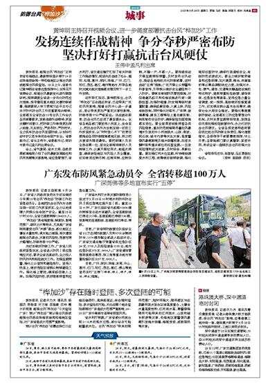新快报讯 记者许力夫 通讯员 杨国杰 陈贻宣 叶万琦 岳路建 沈仲 粤水轩报道 超强台风“桦加沙”今天登陆广东!预计“桦加沙”将以强台风级或超强台风级在珠海到徐闻沿海地区登陆,对广东省造成大范围严重影响。