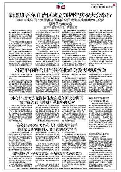 据新华社电 砥砺奋进七十载,天山南北绽新颜。25日上午,新疆维吾尔自治区成立70周年庆祝大会在新疆人民会堂隆重举行。中共中央总书记、国家主席、中央军委主席习近平出席庆祝大会。