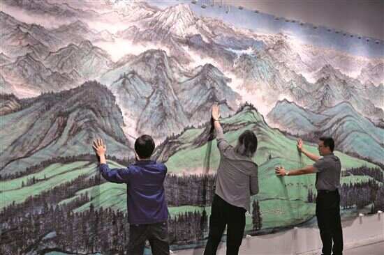 从策划到完成,经过近100天的时间,大型国画《大美天山》在9月25日终于迎来了题跋、盖章,并进入装裱流程。对于大作,广州美术学院副院长蔡拥华流露出了一丝不舍,“以后如果没有特殊情况,估计我们都没有机会再摸一摸它了。所以,在最后的检查步骤,我要从右边到左边,抚平宣纸上的皱褶,抹掉多出来的纸屑。我觉得更多是这三个多月来的一种情感的寄托。今晚,我和其他创作者们估计都会难以入眠。”