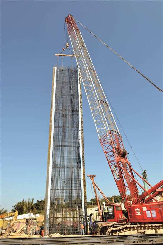■2019年12月6日,琶莲城际大石东站吊装长36米、宽6米、重60吨的地连墙钢筋笼。珠三角公司供图