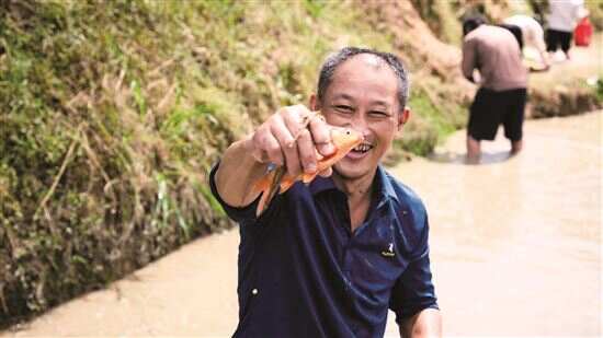 当天,来自太保镇莲塘村的非遗狮舞用欢腾的舞步迎接着客人,游客们与“狮子”近距离互动打卡;与村民一同下田弯腰割稻、打谷脱粒,体验收割水稻的艰辛与快乐;在灌满山泉水的梯田里挥镰捉鱼,与肥美的梯田鱼展开“追逐战”,在欢声笑语中体验农耕乐趣与丰收喜悦,构成了一幅产业兴、乡村美、农民乐的动人画卷。