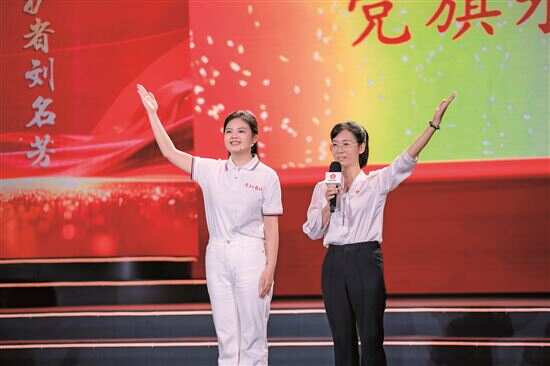 在这个过程中,“吹哨人”刘名芳起到了至关重要的作用。当被问及是否害怕时,这位党员坚定地说:“不怕,群众的生命比我的命更重要。”报告会现场,茂名日报社全媒体记者刘静怡深情讲述了在风雨中守护村庄57条生命的平民英雄刘名芳的故事。而故事的主角刘名芳也来到了现场,她说:“这不是我一个人的功劳,其他党员干部都一起奋力去施救。危急紧要关头,鲜红党旗凝聚强大力量;重大任务一线,党旗永远高高飘扬。”