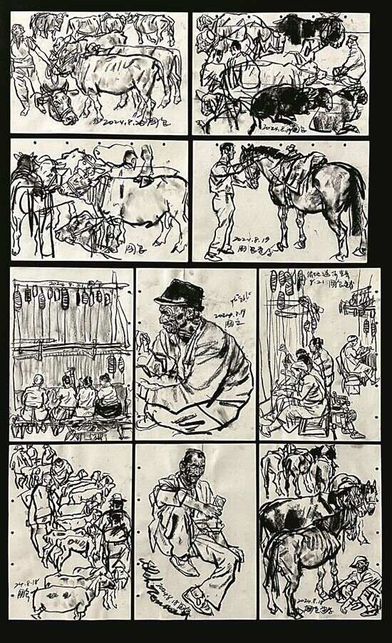 速写,作为绘画艺术中一种快速、直接的表现形式,不仅是技术的锤炼,更是情感的流露与生活的凝练。在全国多位艺术名家的论述中,速写被赋予了丰富的内涵:它既是画家记录生活、捕捉瞬间的“视觉日记”,也是锻炼心、眼、手协调配合的重要途径。从中国国家画院原院长卢禹舜眼中“捕捉时间碎片”的感性表达,到广州美术学院教授方楚雄强调的“对生活的深切感知”;从河南省美术家协会名誉主席马国强指出速写承载的“绘画感与书写感”,到中国国家画院研究员史国良认为速写“可以记录历史”……速写已超越简单的素材收集,成为艺术家与世间万物真诚对话的桥梁。它激发创作灵感,避免概念化重复,更在快速笔触中保留艺术的生命温度。在图像技术日益发达的今天,速写依然以其不可替代的现场感与人文精神,持续滋养着中国画的根脉与未来。