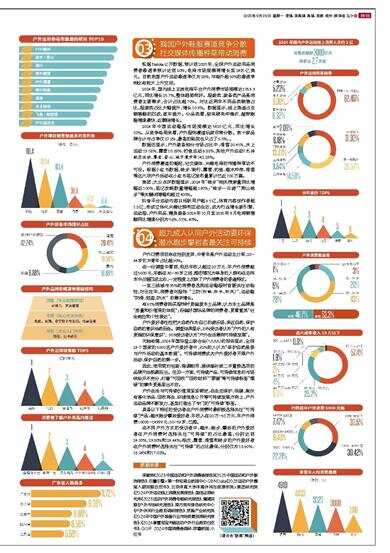 数据还显示,户外装备细分市场占比中,滑雪20.41%、水上运动19.58%、露营10.89%、钓鱼运动6.88%、其他户外运动(包括航空运动、攀岩、登山、城市漫步等)42.23%。