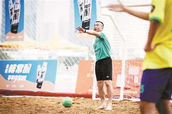 ■吕师贤在沙滩足球比赛中担任裁判。